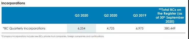 截至2020年9月30日,在BVI注冊的公司總數(shù)已達380,449家。新注冊的公司包括商業(yè)公司、私人信托公司、外國公司和延續(xù)公司。